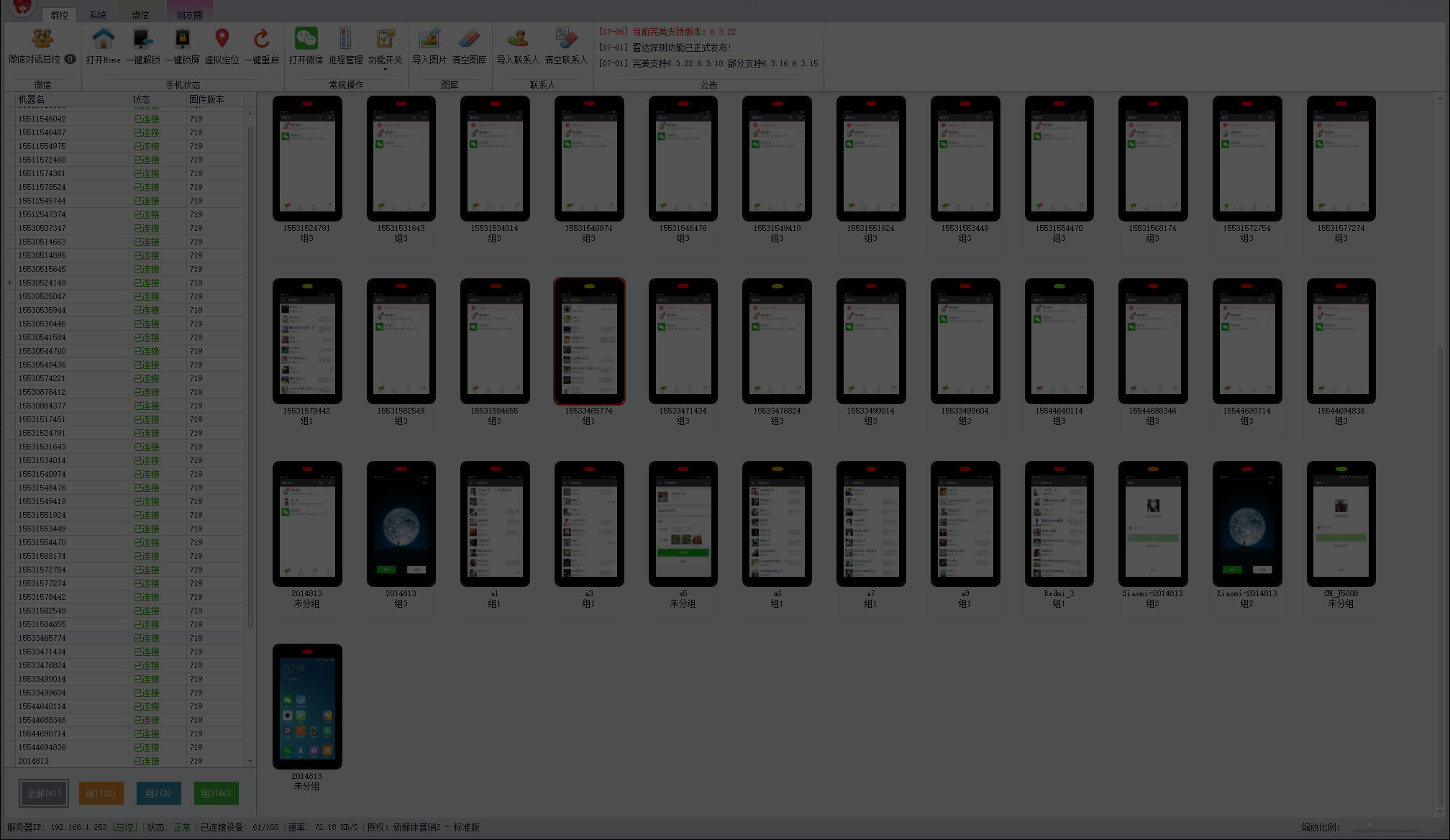 一个通过电脑管理和控制手机进行微信营销的神器微风尚云控微信批量管理控制系统,一款企业级硬件管理系统,专业为微信营销团队而研发,一台电脑控制百部手机,所有操作全自动!微风尚云控是通过Android自动化控制集成系统,把多个手机操作界面直接映射到电脑显示器,实现一台电脑来控制多部手机操作。批量发朋友圈,批量微信聊天,自动化批量加好友,便捷智能,稳定防封,微风尚云控——手机批量管理控制系统,让营销效率更高。